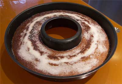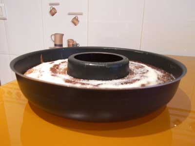 Tener en cuenta que si nuestro molde es algo pequeño o con agujero interior, deberemos quitar de los ingredientes; un huevo, medio vaso de azúcar y medio de harina para ajustar nuestra receta de bizcocho al tamaño del recipiente usado.